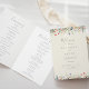This radiant multicolor wildflower folded wedding program is perfect for a rustic wedding. The design features pink, purple, blush, yellow, navy blue, green leaves and meadow wild flowers assembled in a seamless and delightful floral bouquets, evoking natural beauty.