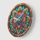 Transform your space with the hypnotic beauty of the Radiant Peacock Feather Mandala clock. This stunning timepiece features a high-definition graphic that creates a breathtaking kaleidoscopic effect. The intricate mandala design is composed of layered peacock feather motifs in a vibrant palette of teal, emerald, magenta, and warm amber tones. Every detail, from the delicate "eyes" of the feathers to the swirling organic patterns, radiates from the centre with high-energy precision. The clock face is encased in a rich, wood-textured border featuring carved scrollwork accents and stylised white numerals. While the artwork masterfully mimics the dimensional depth of layered paper-cut art or hand-carved wood, this is a durable high-definition graphic application on a premium clock face. It is a prestigious statement piece for any modern or bohemian-inspired interior.