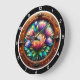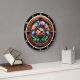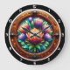 Illuminate your interior with the breathtaking beauty of the Radiant Protea Stained Glass clock. This sophisticated timepiece features a high-definition graphic that masterfully replicates the glowing, translucent quality of artisanal stained glass. The central artwork depicts a lush arrangement of blooming Protea flowers in a vibrant spectrum of sunset oranges, deep purples, and emerald greens. The design is enhanced by "jeweled" light-catching accents that give the appearance of warm, integrated illumination. The scene is encased in a rich, copper-toned circular frame with elegant metallic flourishes at the cardinal points. While the artwork captures the dimensional texture and luminous depth of authentic glasswork, this is a durable high-definition graphic application on a premium round clock face. It is a prestigious and modern focal point for any luxury home decor.
