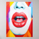 This vibrant artwork captures the essence of beauty and confidence, featuring a striking woman's face adorned with bold red lips that command attention. The use of vivid colours creates a dynamic backdrop, enhancing the allure of the subject and inviting viewers to explore the emotions conveyed through her expression.