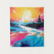 Positioned on the right side, the sun casts a warm glow, accompanied by a striking white ray that extends across the canvas, adding a touch of celestial magic. The water below mirrors the celestial spectacle, showcasing a fusion of blue, pink, and white tones that echo the vibrant landscape "Radiant Serenity" invites you to witness the vibrant dance of colours, where the brilliance of the sunset is mirrored in the tranquil waters below. This painting is a visual symphony, a testament to the beauty of nature's transitions, and a captivating addition to any space seeking a burst of bright, serene energy.