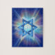 Star of David with the Hebrew Letter Shin in the centre with colourful rays of light from behind.