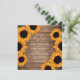 Radiant rustic sunflower wedding invitation featuring elegant script calligraphy and modern typography against a wooden barn background. Simply add your wedding details. Exclusively designed for you by Happy Dolphin Studio. If you need any help or matching products please contact us at happydolphinstudio@outlook.com. We're happy to help you make your wedding the most beautiful day!