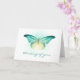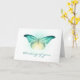 This design features an image of a radiant turquoise, teal, and yellow butterfly, above the words "thinking of you" in teal handwriting script. Inside, the text "with deepest sympathy" appears in matching teal script -- or customize it with your own personalized message.