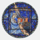 Radiating Nativity Stained Glass Blue Classic Round Sticker