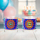 A spiralling, multi-colour fractal image; orange pink and blue on a darker background. Customise by adding your own text on the reverse side.