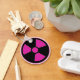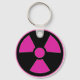 This is a radioactive symbol on a keychain in an almost magenta colour.