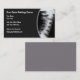 Modern Radiology business card template with image of an x-ray in the background and modern text layout you can customise online. Designed for an x-ray tech, Radiologist, or Chiropractor in a radiology office that does MRI, CT, and CAT scans.
