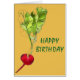 Gardening themed birthday card ! From an original watercolour radish vegetable art illustration by artist Sacha Grossel. This colourful and vibrant vegetable art would brighten up your home and environment. It depicts a red and green organic radish in the genre of fruit and vegetable art.