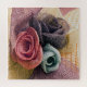 A macro shot of multi coloured raffia roses on a hat. Photographed by Sandra Foster © - Sandra Foster Designs.