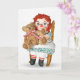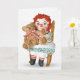 Rag doll in rocking chair with teddy bear on white crinkled paper for thinking of you.