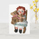 Rag doll in rocking chair with teddy bear for thinking of you.