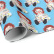 Rag doll with daisies on blue wrapping paper
