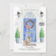 Announce your new address with our stylish announcement featuring a ragdoll cat, blue front door, welcome mat, slate sign, topiaries and a floral wreath set on a grey brick background.