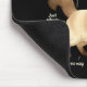 The product itself is good quality and I like the simplistic elegant design. The only criticism I have is that it's not really accurately represented by the picture provided. I thought that the mousepad would be a non-porous or laminate surface and as such the gold writing would actually shine against the soft pink. However the design is printed on a thick fabric surface, so the gold colour is just the shade of gold but doesn't stand out from the pink background. (See picture)