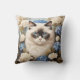 Ragdoll Cat With Blue Hydrangea Flowers Cushion