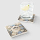 The coasters are gorgeous, a quality feel and heavy weight. They look like a precious archeological find. A rustic stone juxtaposed with a modern floral black and white print. I like the way the print goes slightly imperfect on the cut stone edges giving them a kind-of natural beauty.