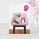 Cute ragdoll kitten with birthday gift and pink party balloon.