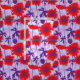 Bold purple leaf and red poppy repeat patterned fabric. Designed by Sarah Trett.