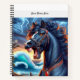 Two artworks of a dramatic black horse near the ocean during a lightning storm, printed on the front and back of a Notebook.
