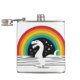 The flask itself is fine. It’s a cheap flask, obviously bought in bulk, however am prepared to overlook that. Given that it is a personalized item, I would have liked to have seen gift boxing instead of the generic packaging. Terrible printing, and/or quality. It’s a cheap, tacky vinyl. It is not cut straight and is also applied in a way that it is overhanging the bottom, causing the glue to catch on items and it will eventually roll and tear, damaging the wrap.