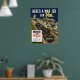 This vintage World War II poster features trains speeding their cargo down the rails. It declares, "Here's a war job for you -- Railroad Workers Urgently Needed. Apply to any railroad office or agent -- any offices of the railroad retirement board -- or to the U.S. Employment Service." Celebrate American and WW2 History with this digitally restored vintage war poster product from The War Is Hell Store.