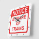 Railway, Beware of Trains Sign Square Wall Clock