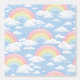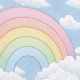 Pastel rainbows with puffy white clouds on a blue sky background for a nursery or child's bedroom.