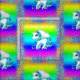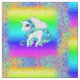 A very colourful and pretty unicorn pattern fabric featuring a repeating design of unicorns with blue hair and mane, large eyes and cute pink wings. Each unicorn is surrounded by a frame of rainbow glitter, with a beautiful rainbow gradient in the background. This gorgeous rainbow-coloured material would make a great craft project for kids, or for making kids' clothes, cushion covers, tote bags, decorations for unicorn birthday or baby shower parties, and more.