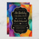 Rainbow and Gold Glitter Alcohol Ink 21st Birthday Invitation