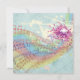 Birthday party invitation. This exciting musical themed image is a funky retro design of a pastel coloured rainbow with dark multicolored music notes on pieces of sheet music exploding outward. Butterflies and paint splatters seem to burst forth from the centre. The background is a faded, dark green, vintage style, shabby grunge texture with faded handwriting.