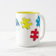 Rainbow and puzzles Proud Autism Mama Two-Tone Coffee Mug
