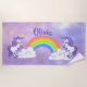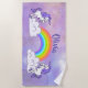 Rainbow and Unicorns Design Beach Towel with customisable personalisation. For no text, delete sample name and leave blank.
