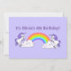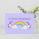 Rainbow and Unicorns Design Flat Invitation with customisable text and background colour.