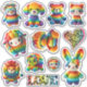 With their sweet smiles and adorable faces, these colourful rainbow knit stuffed animals are sure to bring a smile to your face along with the leopard print hearts and the word "LOVE" that fill this sticker sheet. Bask in the nostalgic glow of the 1980s with these stickers, which if you're of a certain age, may remind you of days past. Sure to brighten your mood, these stickers are girly and fun. Buy them for a child, or keep them for yourself!