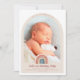 Celebrate your little one's 1st Birthday with this single photo birthday invitation. This birthday invitation features an arch shape framing your favourite toddler photo. A hand drawn rainbow in desert palette ties this modern design together.