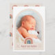 Share your new joy with this single photo birth announcement. This birth announcement features an arch shape framing your favourite newborn photo. A hand drawn rainbow in desert palette ties this modern design together.