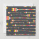 Illustrated pattern of rainbow striped archery arrows over a black backdrop