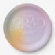 Graduation modern elegant stylish contemporary party decor paper plate design. Contemporary pastel rainbow aura simple typography design.