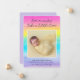 This darling birth announcement features a watercolor rainbow background and the words, "Even miracles take a little time." Easy to customise with your own text and baby's photo!
