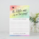 This trendy gender neutral rainbow baby shower wish card features a hand lettered heading, "A little one is on the way" and your custom text on the front. Both sides have a watercolor rainbow background. Use the template form to add your details. The Customise feature allows you to change the font style, and add or delete text.