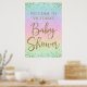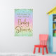 Rainbow baby shower welcome sign with pretty gold letters on a rainbow and gold glitter background. This rainbow baby shower welcome sign is easily customised for your event by simply adding your details. You can also remove the background and add the colour of your choice.