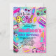 Girls back to the 90s theme party invitation in pretty rainbow colours.
