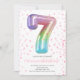 Rainbow Balloon 7th Birthday Girl Party Number Invitation
