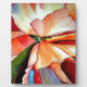 with original design from watercolour painting by artist Sacha Grossel of multi coloured, rainbow begonia flower. This macro, close up orange and red floral design is bright and colourful, showing the abstract form of the botanical inspired flower.