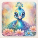 Rainbow Birds Peacock 1 Square Paper Coaster