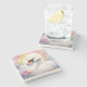 The coasters are gorgeous, a quality feel and heavy weight. They look like a precious archeological find. A rustic stone juxtaposed with a modern floral black and white print. I like the way the print goes slightly imperfect on the cut stone edges giving them a kind-of natural beauty.