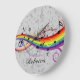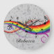 Black musical notes floating on a rainbow of swirling rainbow colours. The background is grey musical notes on a lighter shade. Add your own personalised name to create a unique gift for the music lover. sgb01