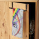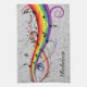 Black musical notes floating on a rainbow of swirling rainbow colours. The background is grey musical notes on a lighter shade. Add your own personalised name to create a unique gift for the music lover.