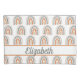 A modern and trendy whimsical pattern with a chic white background. Decorated with painted rainbows and hearts in beige, grey and brown. On front: Personalise and add your name. Back: rainbow pattern only.